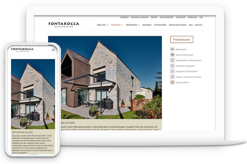 Webdesign für FONTAROCCA Naturstein AG, Schweiz